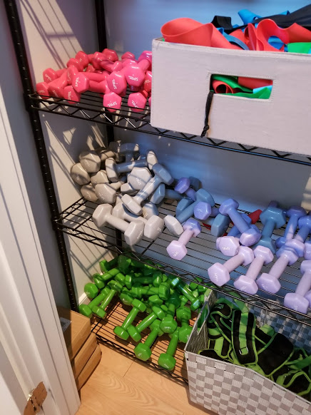 This is where I went wrong. I thought 2lb. weights would be safe. But every exercise we did, we did with both weights in one hand. Why are only the 1lb. weights pink? Are they trying to shame you into avoiding them? It worked today, but it won’t work again. Two of the pink, so your form don’t stink.