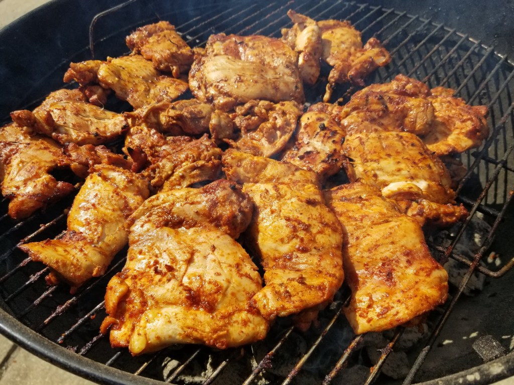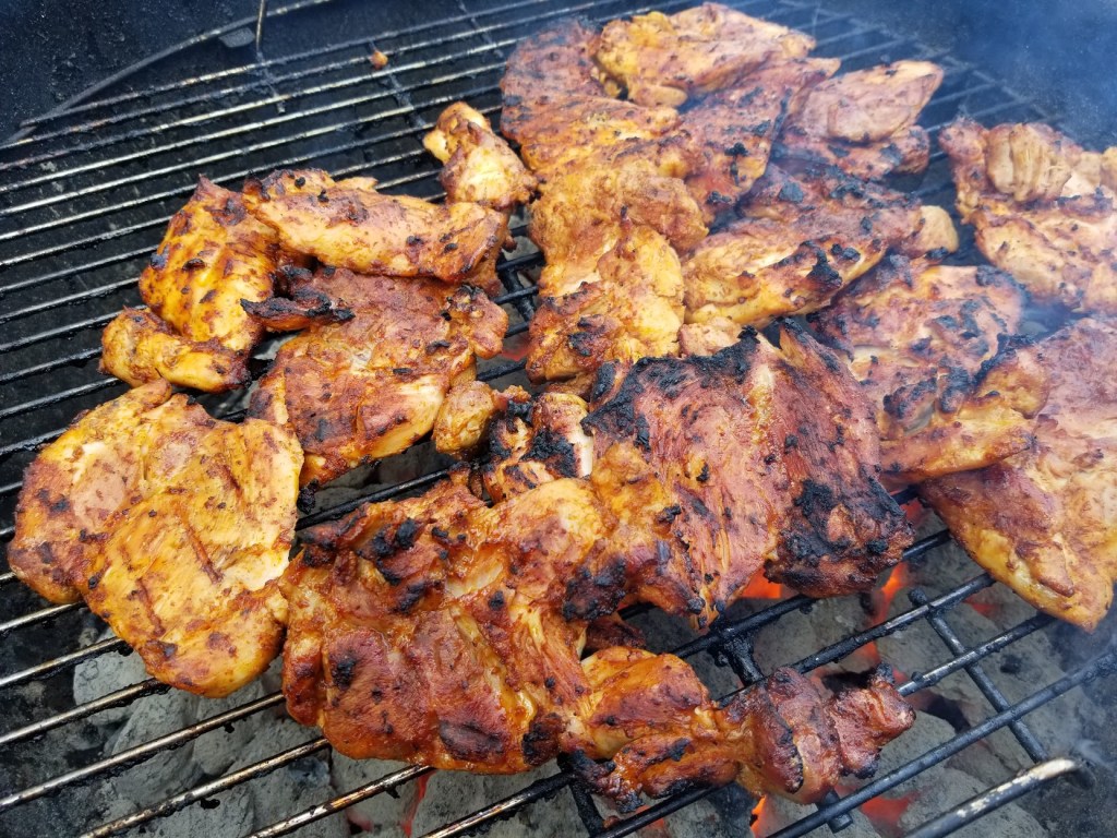 I’m a big fan of Chipotle, where you can do a pretty delicious low carb bowl. But since they seem to get a lot of people sick, I decided to start doing chipotle bowls at home. After testing out a bunch of the top-rated chipotle copycat chicken recipes, I’ve found a “recipe” that crushes it in the effort-to-end-result ratio department. Let’s face it, the barre bro doesn’t exactly have the most discriminating palette, I’m the guy that will choose quantity over quality every single time, so it just has to be good enough to eat, and I’m happy. I take a can of this Embasa chipotle peppers, dump it in a food processor with most of a red onion, garlic powder, and two big ass spoonfuls of this ancho chili pepper powder, pulse it into oblivion, and you’re done. Season the chicken separately, obviously. Then you have a nice marinade – add a little water, mix it all up, and marinade chicken thighs in it.