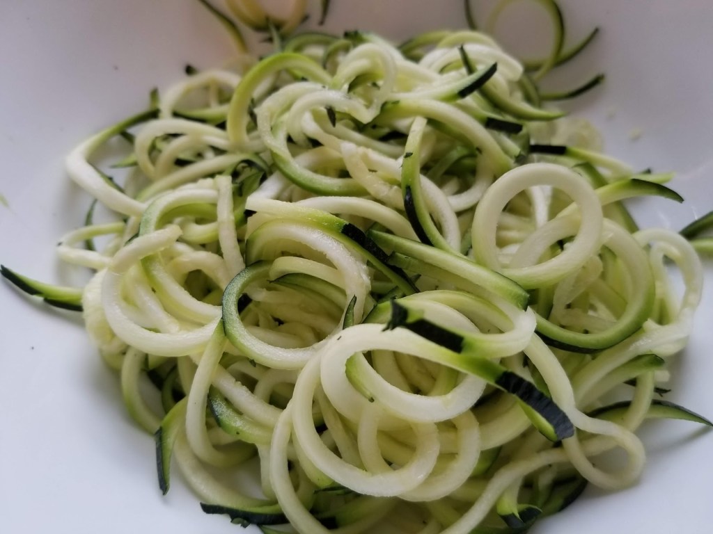 First thing I ever spiralize is a zucchini, because I’m already missing noodles. I never knew zucchini had two c’s – thanks spellcheck. Man, remember losing points on homework for misspelling stuff? And then the first few years when spellcheck was available, teachers tried to police its use? Glad that ridiculousness is a thing of the past. Yet somehow TI calculators are still going strong…