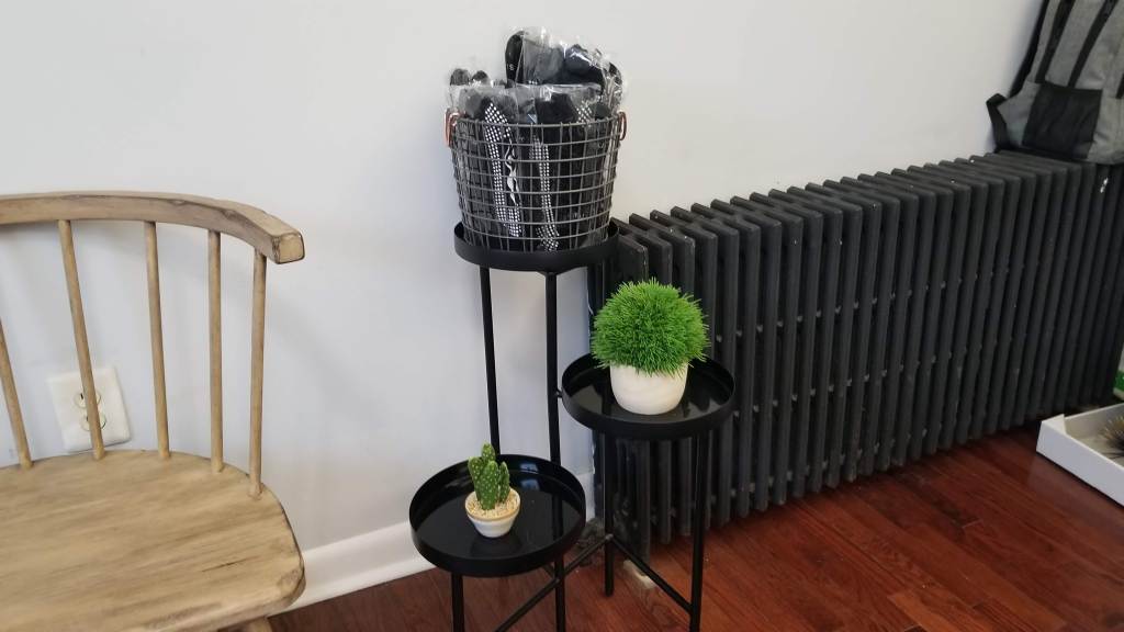 Some fake plants and barre socks to add a little color to the place.