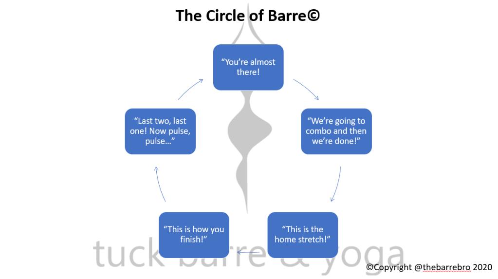 My wonderful wife Callie has actually created a barre teacher training program, and I was able to break into her secret vault like Wikileaks and get a sneak peek into the training manual. And what I found will SHOCK YOU. Here is a page called, “The Circle of Barre”