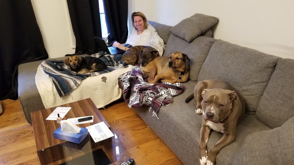 By the way, we always tell our friends with zero or one or two dogs, “Get another one! You won’t regret it!” And they’re all like, no, we have enough, or no, I won’t have time. I hope you guys are rethinking your life choices – quarantine is so much better with MOAR DOGS.